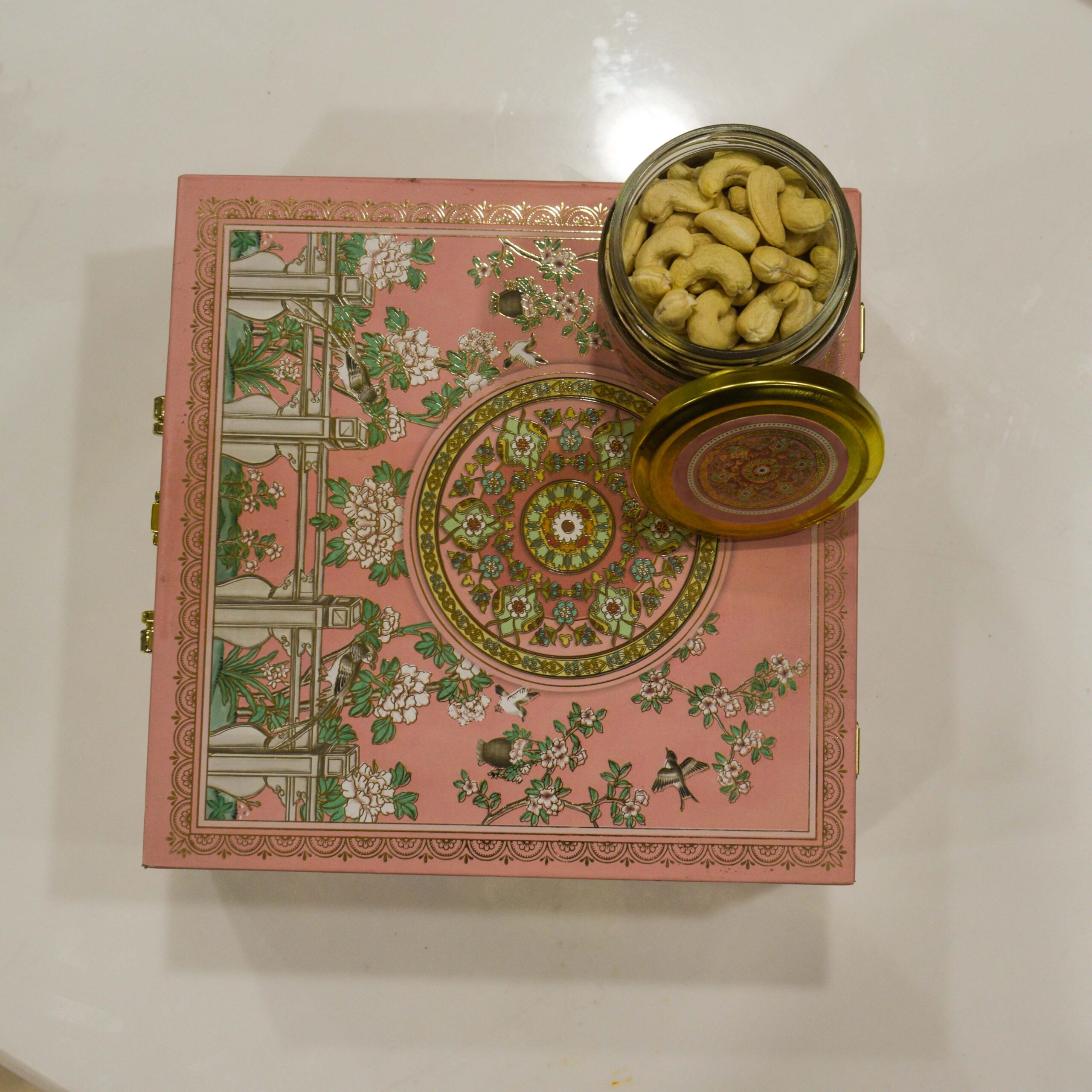 Pink Floral Gift Box with 4 Glass Jars – Premium Dry Fruit Hamper