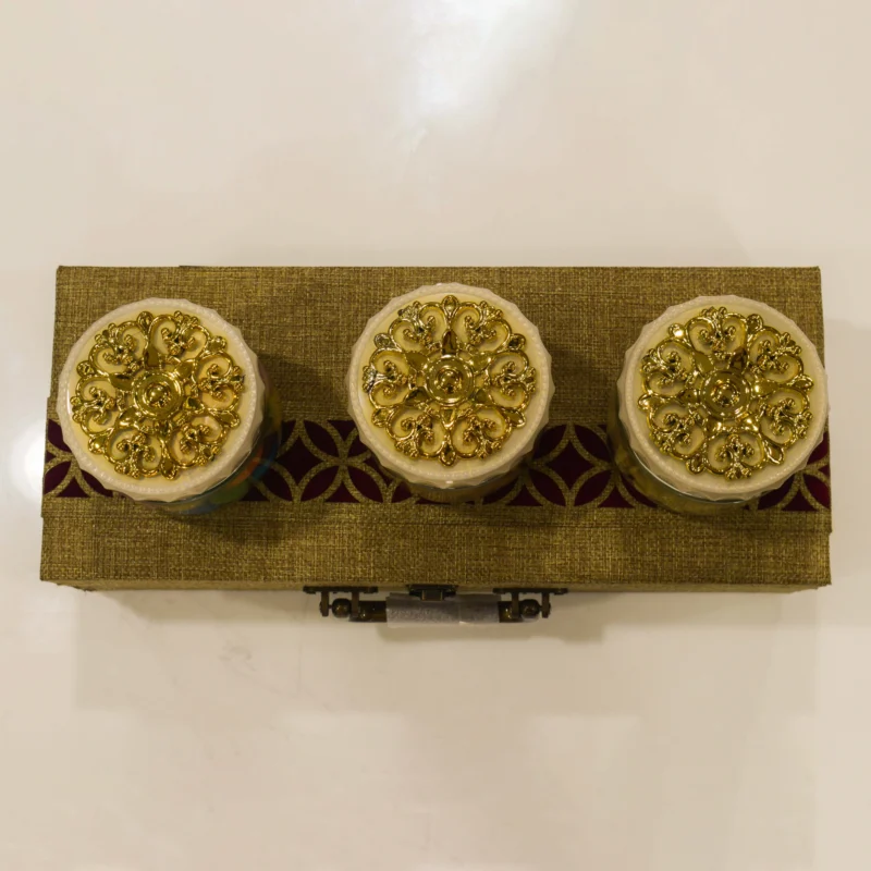 • 3 Premium glass jars (200g each) with golden designer lids