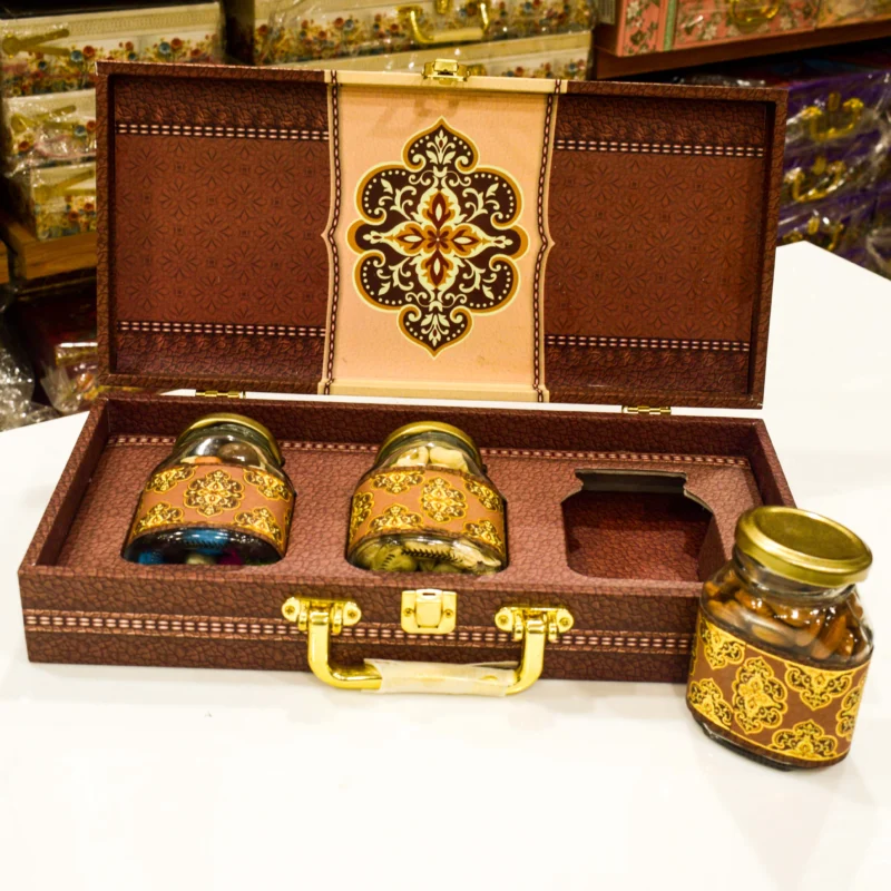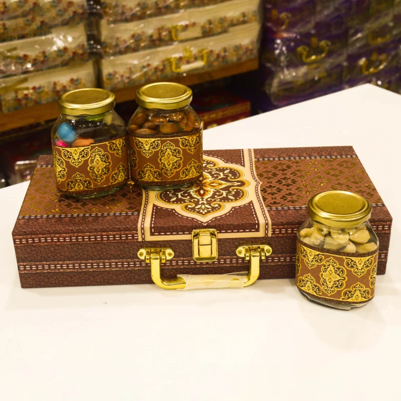Celebrate special occasions with our Premium 3 Jar Gift Hamper (100g each jar). This luxury box includes beautifully designed glass jars, ideal for dry fruits, chocolates, or sweets. With a royal finish, golden detailing, and a reusable keepsake box, it’s perfect for Diwali, weddings, return gifts, and corporate gifting.
