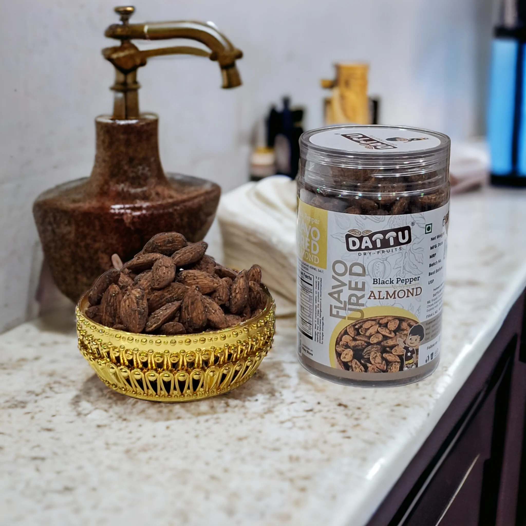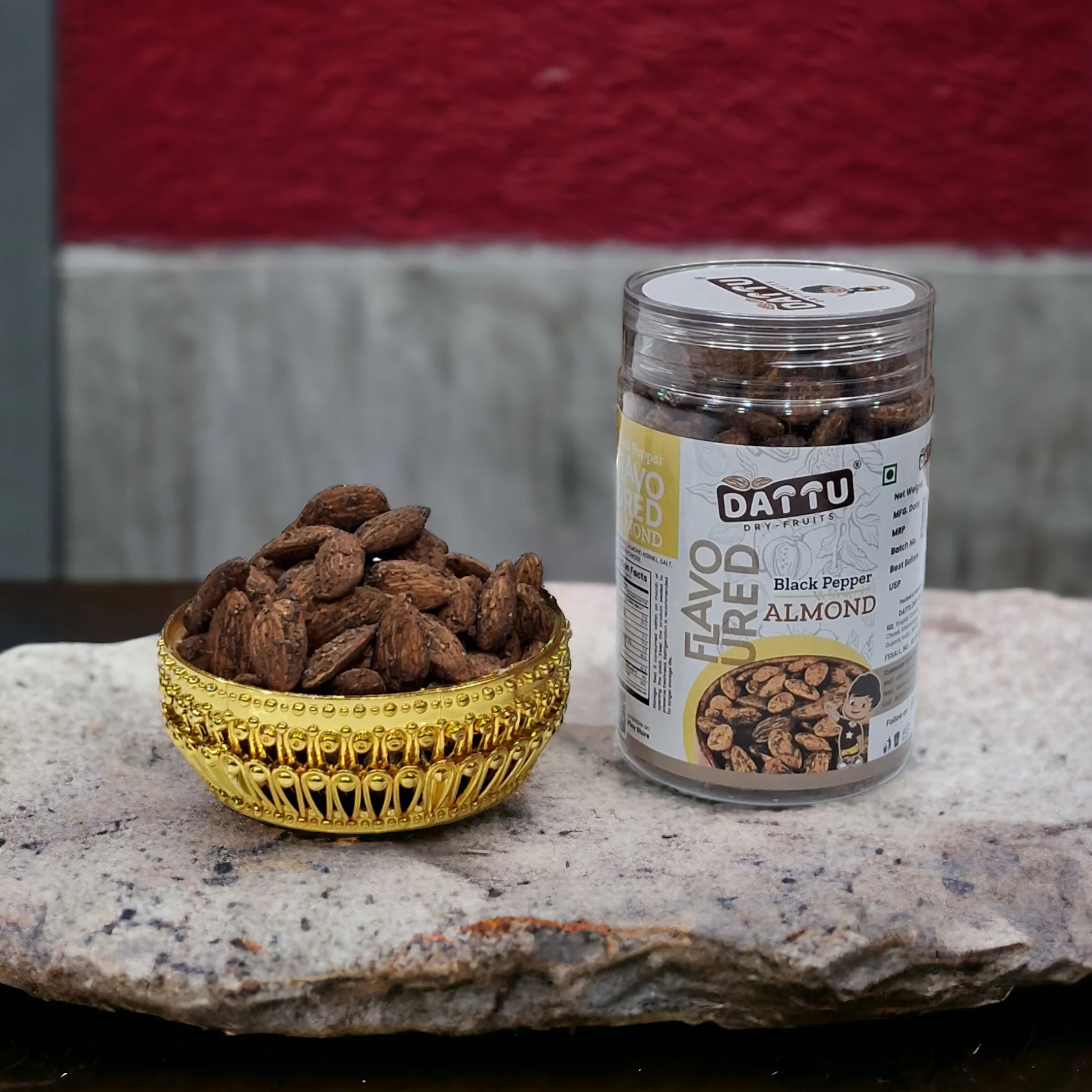 Savor the bold taste of Premium Black Pepper Almonds, perfectly roasted and seasoned with a spicy black pepper twist. Rich in protein, fiber, and healthy fats, these crunchy almonds make a delicious guilt-free snack that boosts energy and supports heart health. Perfect for everyday munching, party servings, or festive gifting.