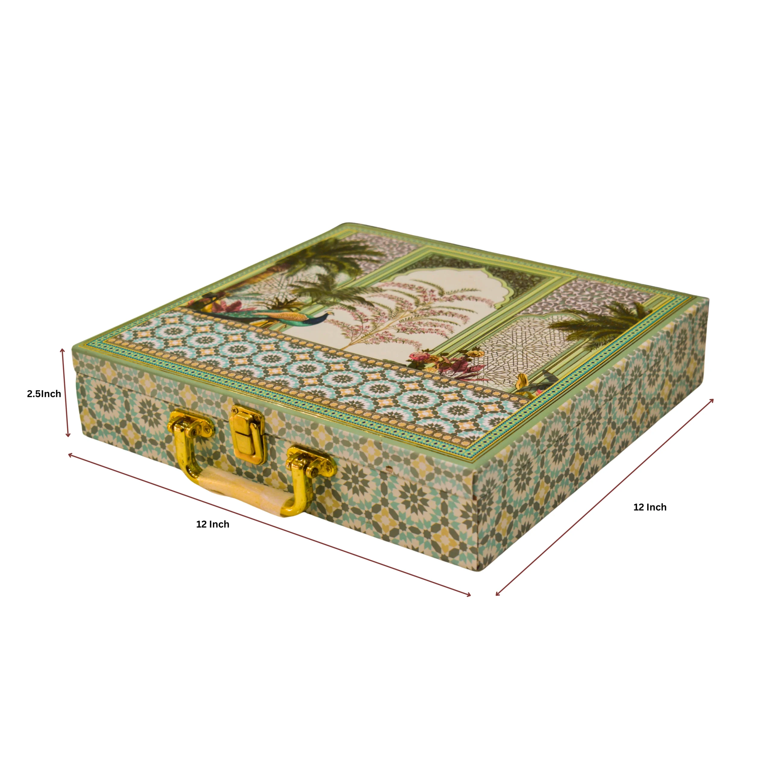 Presentation: An ornate box with a luxurious interior, featuring vibrant patterns, gold accents, and a functional clasp that invites gifting.