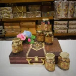 Make every celebration truly special with this luxurious dry fruit gift hamper, crafted in a beautifully designed royal box with golden detailing and a sturdy handle. Inside, you’ll find 6 premium jars (100g each) filled with assorted dry fruits like almonds, cashews, pistachios, and raisins – each sealed to preserve freshness and flavor.