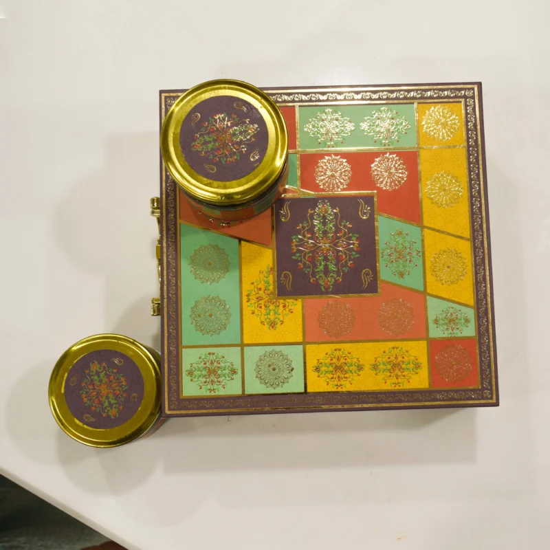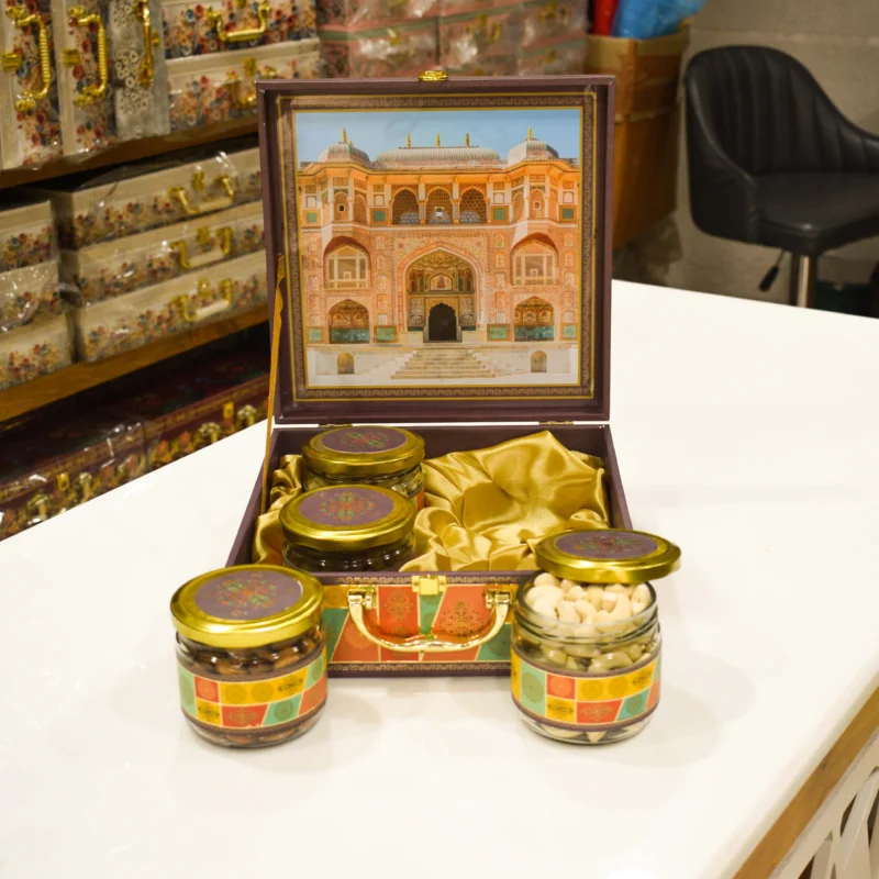 Perfect for Diwali, weddings, anniversaries, or corporate gifting, this heritage-inspired box blends cultural elegance with premium gifting style, making it a memorable present for every occasion.